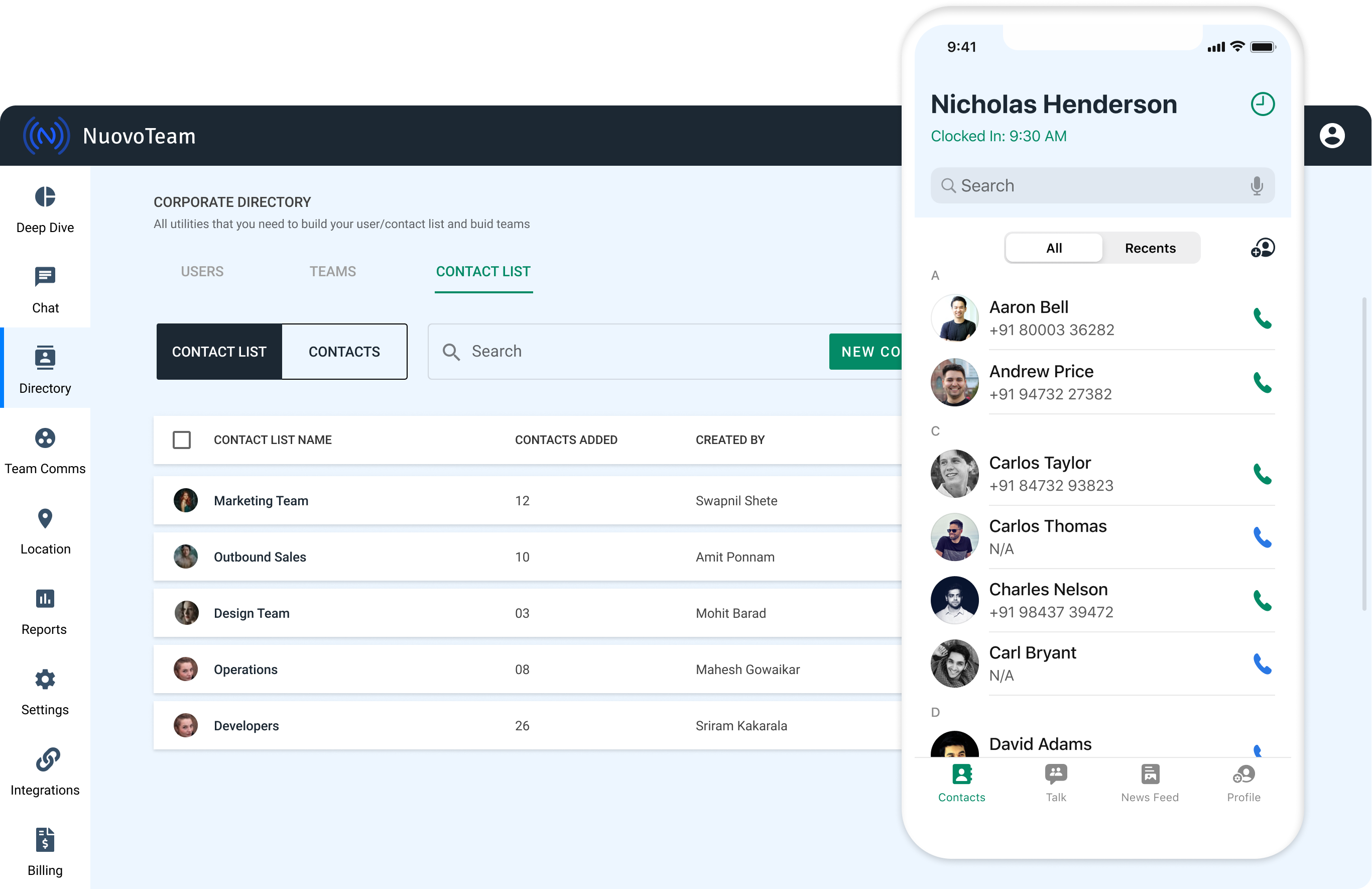 Bring your employees together by seamlessly integrating contact information and employee details with NuovoTeam Corporate Directory.
